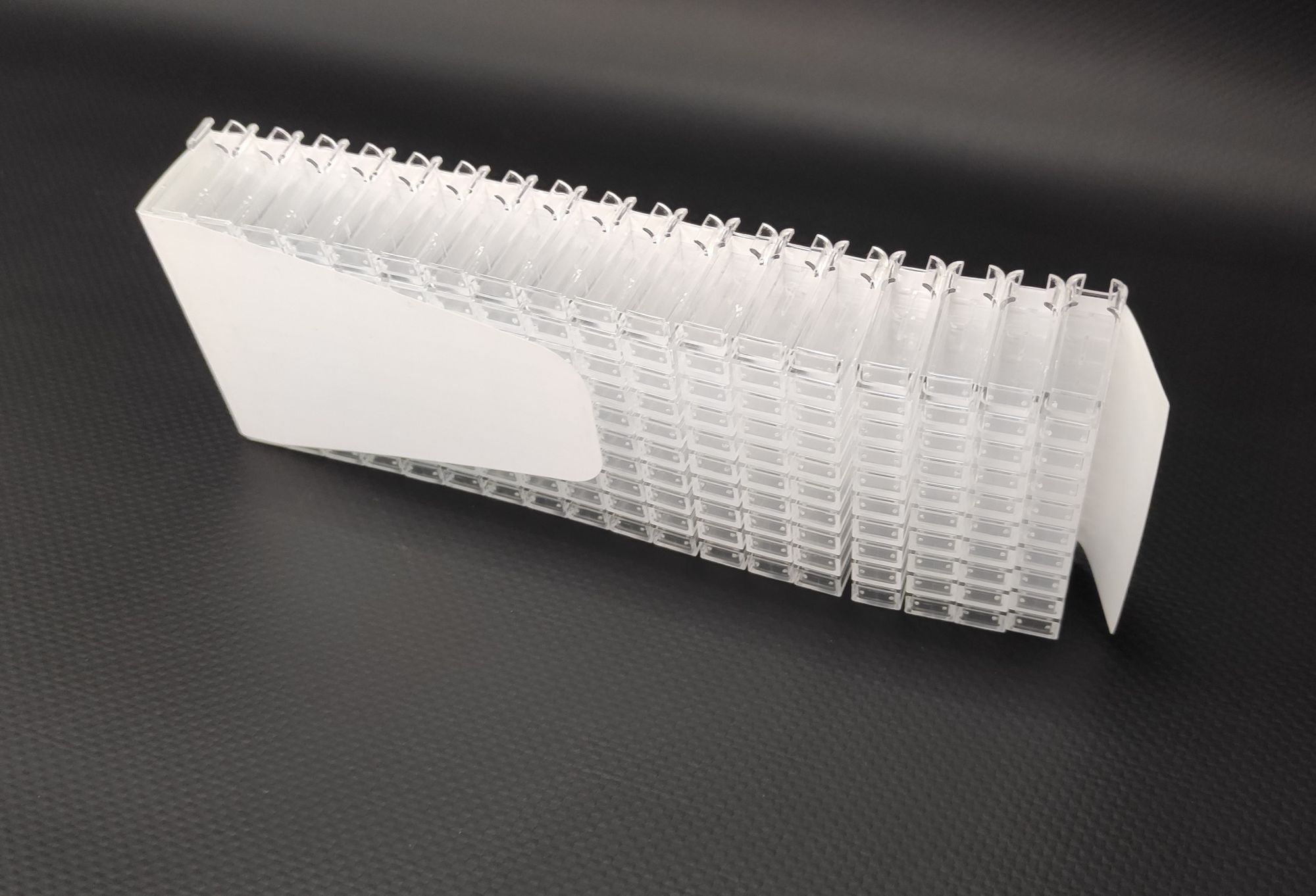 Кювета одноразовая. Сегмент из 10 ячеек по 18 шт. наклеены на бумажную ленту, во избежание запыления