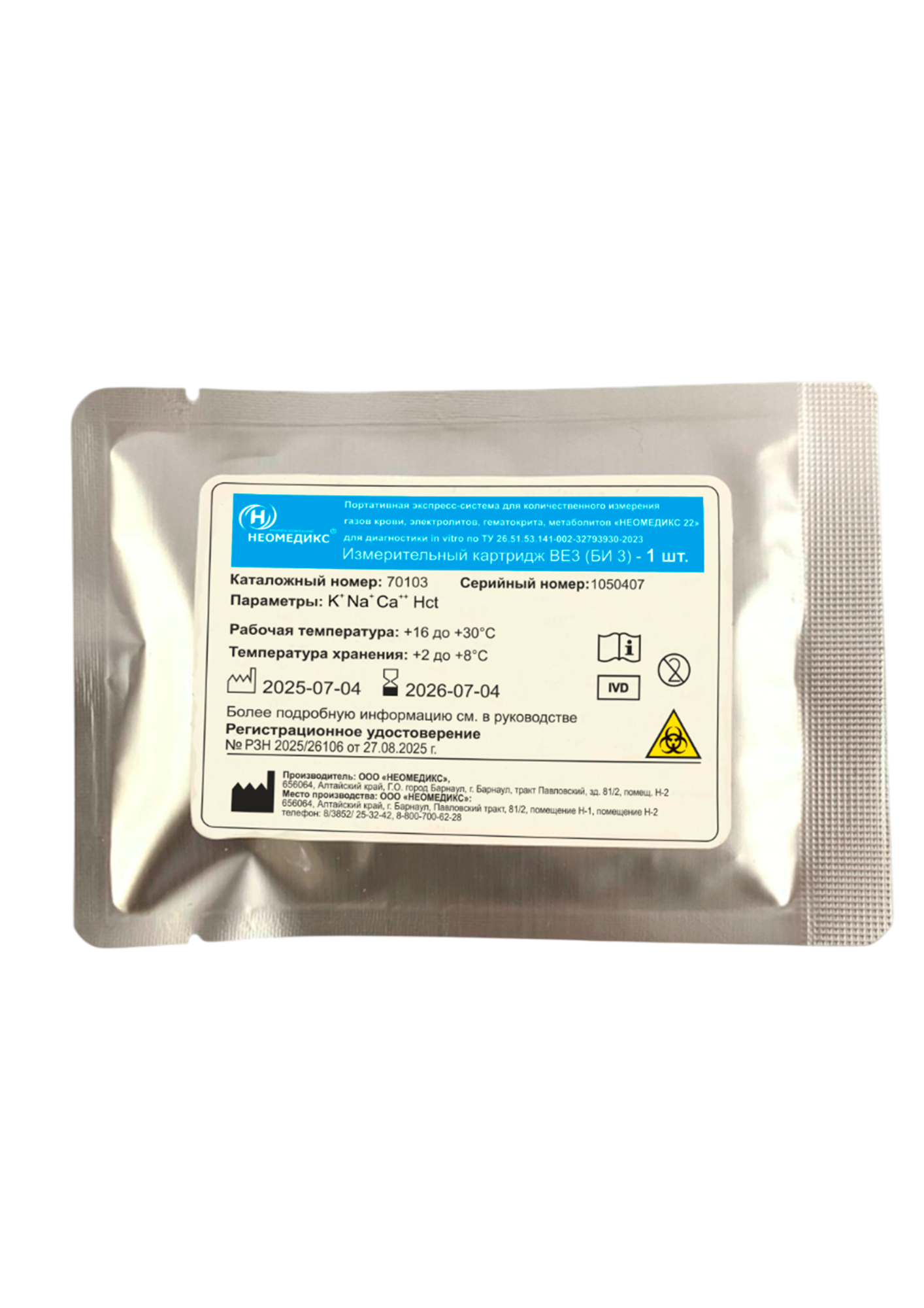 БИ 3 (BЕ 3) — измерительный картридж для анализатора газов крови "НЕОМЕДИКС 22"