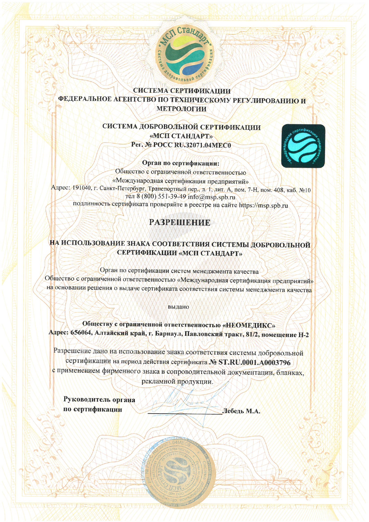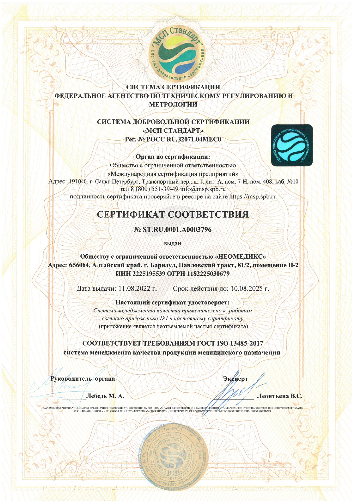 В августе 2025 года было получено регистрационное удостоверение на портативную экспресс-систему для количественноо измерения газов крови, электролитов, гематокрита, метаболитов "НЕОМЕДИКС 22" для диагностики in vitro по ТУ 26.51.53.141-002-327939-30-2023, производства ООО "НЕОМЕДИКС" (РУ №РЗН 2025/26106 от 27.08.2025 г.)