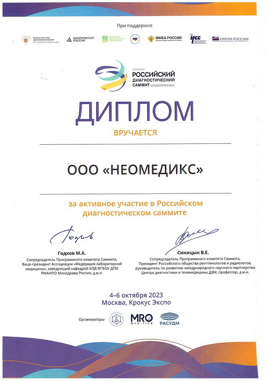 По результатам взаимодействия с сотрудниками ООО «НЕОМЕДИКС» хотелось бы отметить высокую квалификацию специалистов, участвующих в процессе установки, настройки и эксплуатации оборудования.